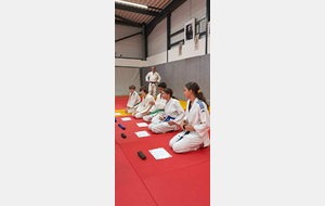 Les éveils judo ont démontré le travail réalisé pour apprendre à chuter, puis en faisant chuter les plus grands. Puis les parents présents ont pu découvrir la démonstration de kata par les benjamines du club.